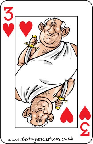 This week’s card is the Three of Hearts – for Charles Clarke, who, along with fellow former minister Alan Milburn, launched a campaign for another candidate for Labour leader following the departure of Tony Blair, but seen by many as an assault on leader-in-waiting (or so he thinks) Gordon Brown…