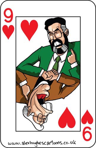 OK, slight change of my own rules this week – it’s the 9 of Hearts, and it’s Gerry Adams and Ian Paisley, after their hell-freezing-over-style meeting at Stormont earlier this week. Above is Ian Paisley, and below is Gerry Adams (or the other way around…)