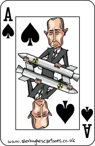Getting in a day early for a change (as I’m off on my hols tomorrow), here’s Bush-baiting Russiam Premier Vladimir Putin, who this week announced that Russian nukes were again being targeted at European targets in response to the USA’s anti-missle system. Sounds like there’ll be a chilly, Cold War-esque atmosphere at this week’s G8.