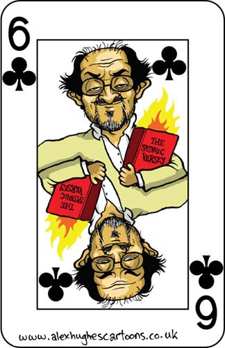 Nearly half-way through the deck now, and this week it’s author of the ‘Satanic Verses’ Salman Rushdie, who was awarded a knighthood this week. This has, of course, upset a lot of Muslims, in particular Iran, but for some reason, no-one appeared to have seen this coming…