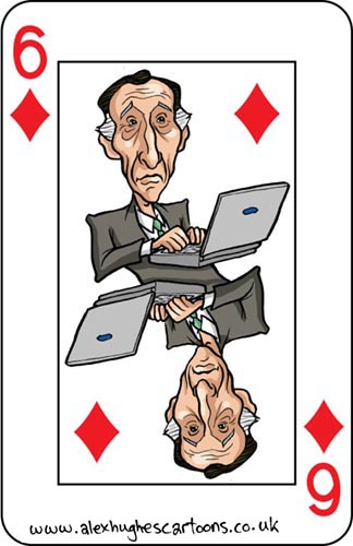 …and bringing us right up to date we have the 6 of diamonds with disgraced comic actor Chris Langham, star of TV’s ‘The Thick of It’ and former writer for the Muppet Show, who this week was convicted of child porn offences, which he had been downloading for ‘research’ for a character.