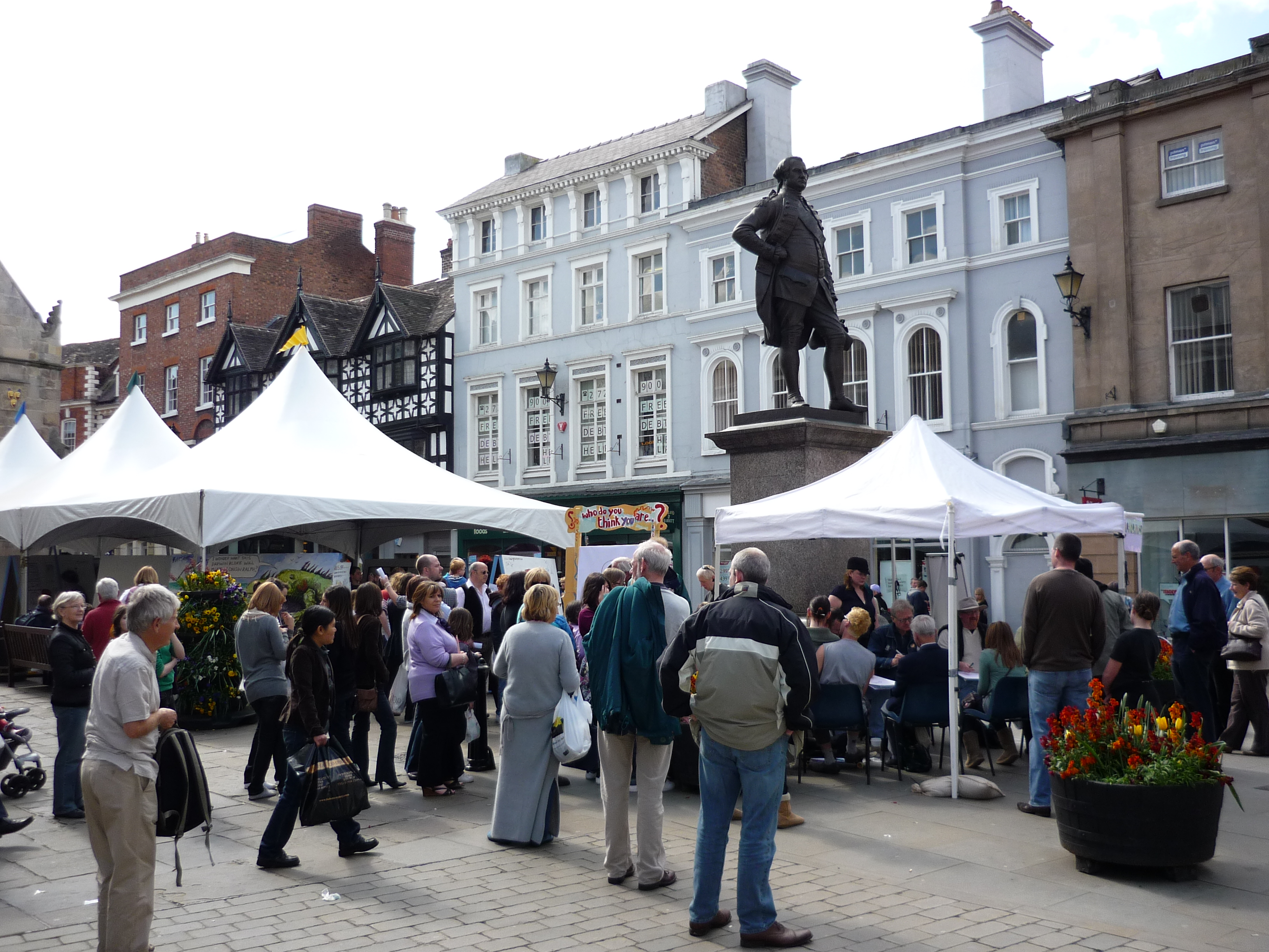 I arrived on Thursday night in order to start fresh and early on Friday morning, snapping and videoing the goings-on in the main square. A number of the posts were written (and videos edited) over the weekend, using laptops and the WiFi connection at a certain well-known coffee shop chain in the Square in Shrewsbury.