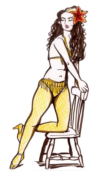 Aloha! and welcome to Paradise Island (no, not that one), the setting for the most recent outing for Dr Sketchy’s in Birmingham. As the name implies, this instance of the burlesque anti-art life drawing class had a distinctly tropical theme, so we donned our leis and sharpened our pencils in readiness.