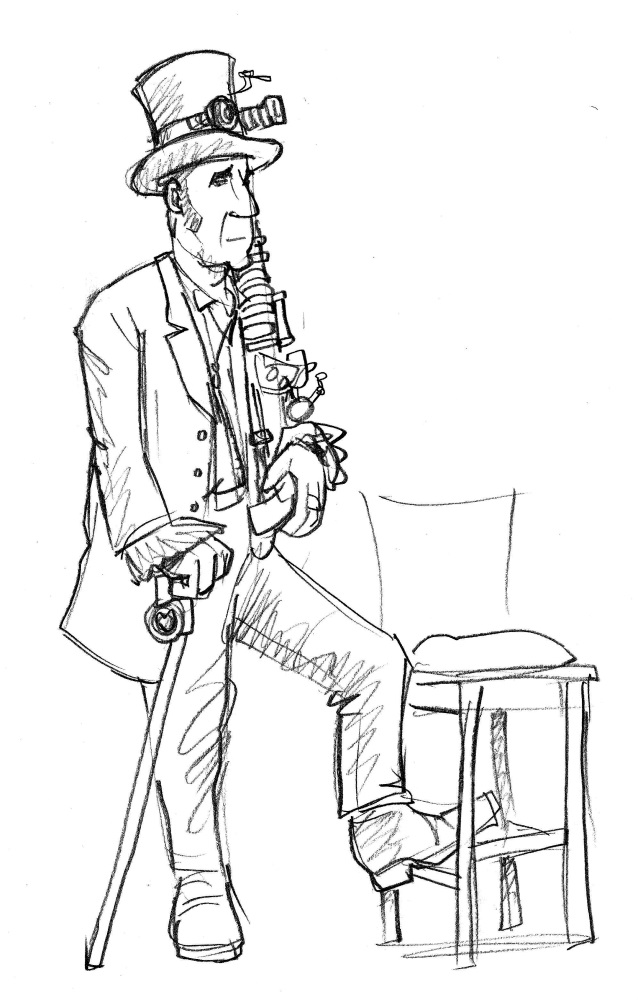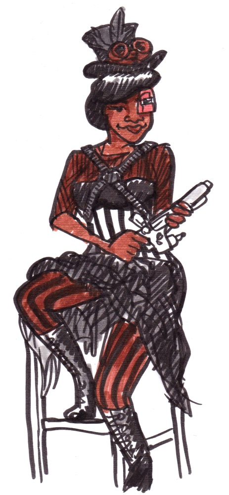 Regular visitors to this blog will understand that Steampunk is a subject rather dear to my heart, being the theme me and my lovely bride Maria chose when we got married back in 2012. So, when it was announced that the next Dr Sketchy’s was to don cogs and corsets, I dug out the bowler and goggles and headed on down to The Victoria for an very steamy evening of sketching.