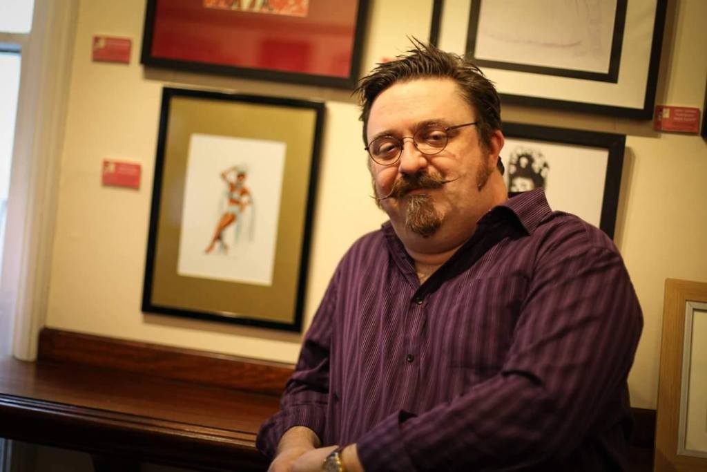 A change of scene in May with the arrival of the first Birmingham Cabaret Festival at the Old Joint Stock Pub & Theatre. I was asked to submit some artwork for a Dr Sketchy’s exhibition to be held in the Theatre Bar and Lobby at the former bank. You may recognise a couple of the pieces in the photos below from Drawn of the Dead and Deco Darlings back in 2014.